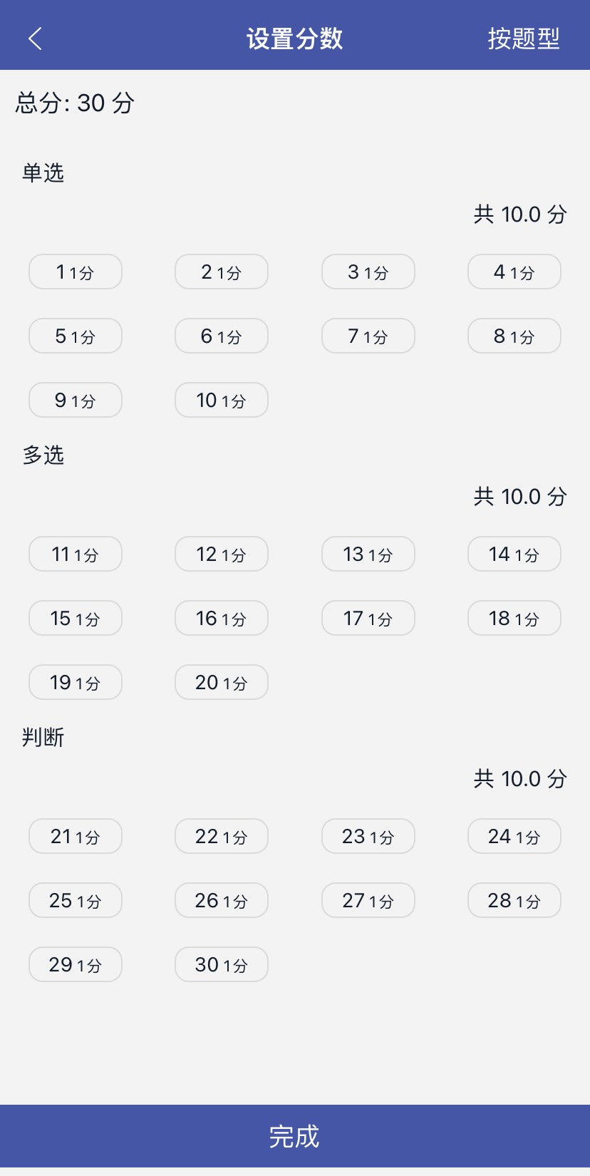 5. 设置题目的分值,默认为1分,如需修改可点击题号。