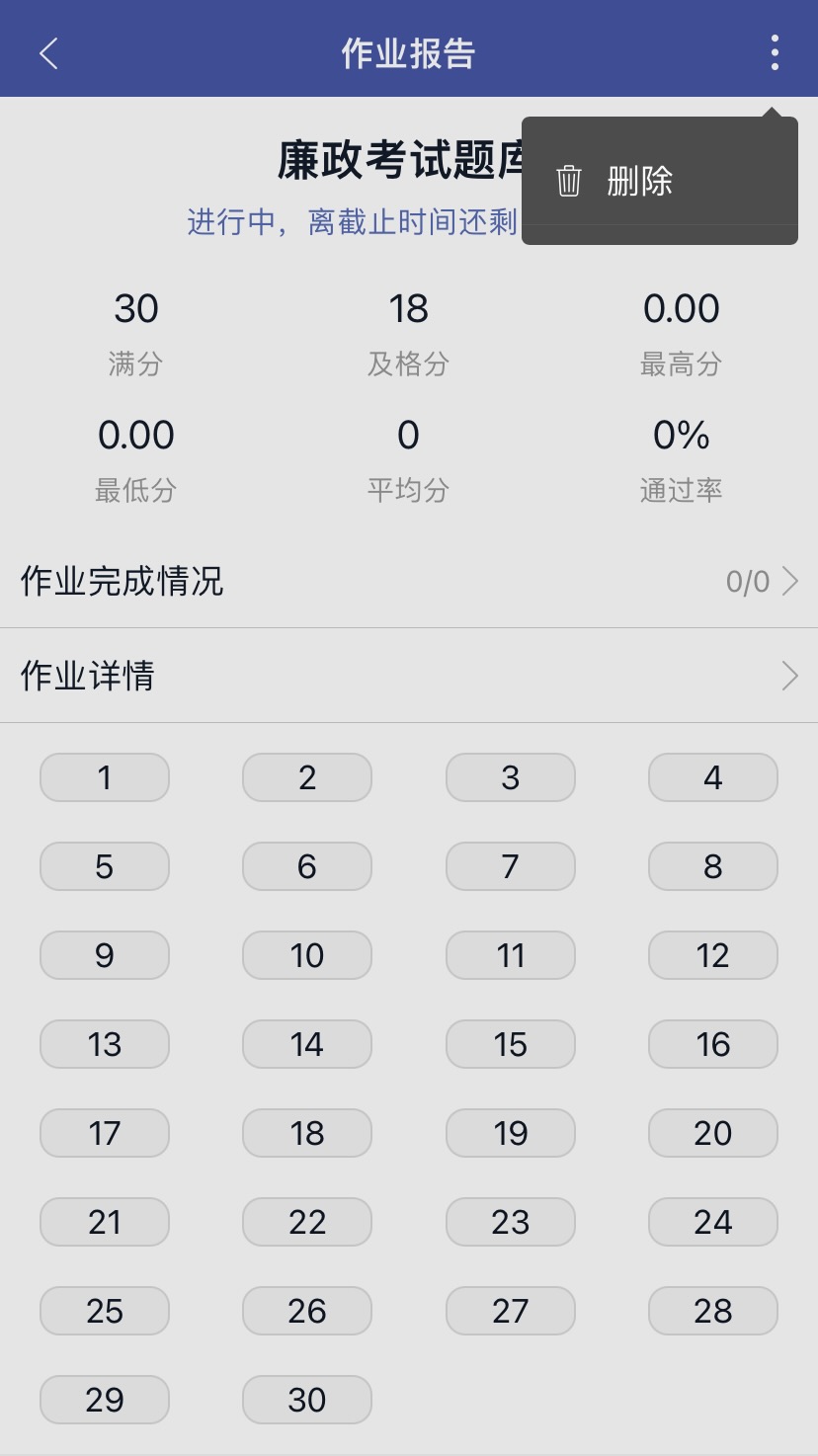 9. 如果需要删除作业,可进入作业报告页面,点击右上角菜单里的删除。