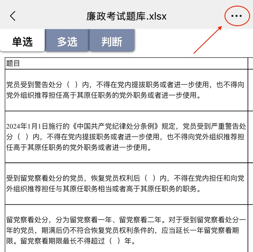 2. 打开手机的微信,进入【文件传输助手】,点击收到的Excel文件,进入文件详情页面,再点击右上角的按钮。