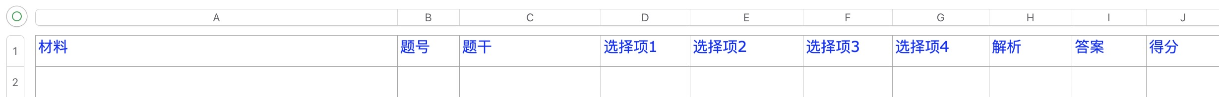 - 题号: 基于同一份材料的题目题号,从1开始。如果这个题目并不是基于这个材料,请将题号设为空。